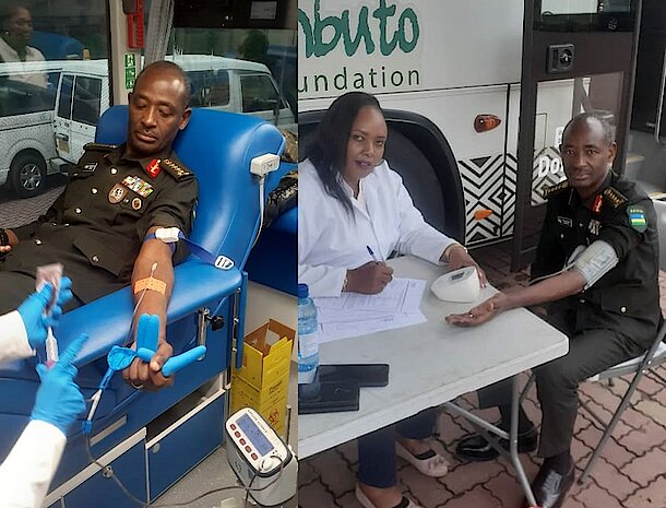 Yesterday the medical team collected 99 blood units from RDF Headquarters and Republican Guard (RG) personnel. The RDF Chief of Defence Staff, Gen MK MUBARAKH participated in the exercise as one of the blood donors.