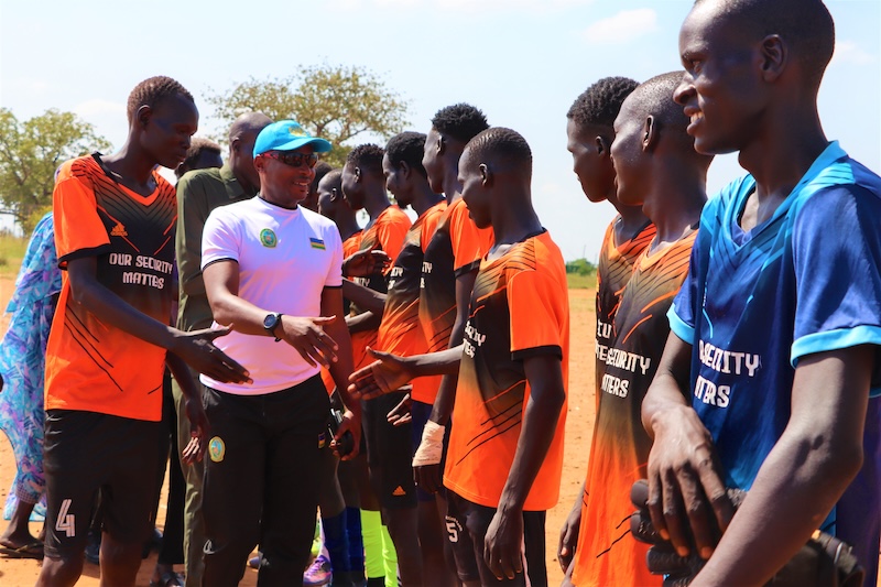 Rwandan Peacekeepers in South Sudan play friendly football match and donate sports equipment to the youth