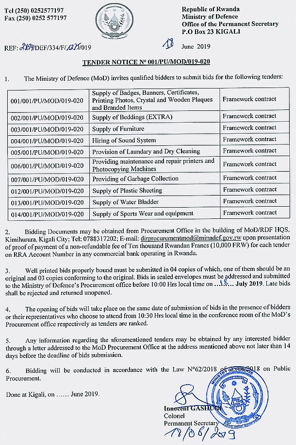 TENDER ANNOUNCEMENT
