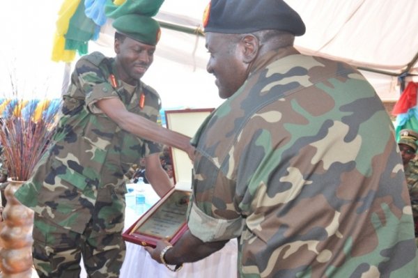 Before closing ceremony, on 24th May, the Chief of Defence Staff (CDS) of Rwanda Defence Force, Lt Gen Charles Kayonga together with the Ugandan State Defence Minister, Gen Jeje Odong and EASF officials visited Rwandan Contingent in Mawagala Buikwe District (Sector 3 Headquarters). The visiting Officials received a brief presentation by the Sector 3 Commander, Lt Col W Ryarasa. The officials expressed their satisfaction in the Sector Visitors book. Gen Odong wrote “Impressive” while the RDF CDS and Lt Gen I Koreta congratulated the Rwandan Contingent, “A very good job well done”, congratulations”.