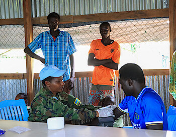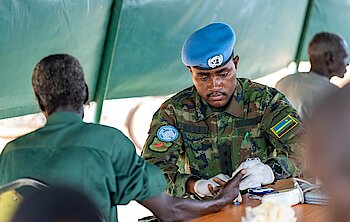 Rwandan peacekeepers from the Rwanda Medical IX Level 2+ Hospital, operating under the United Nations Multidimensional…