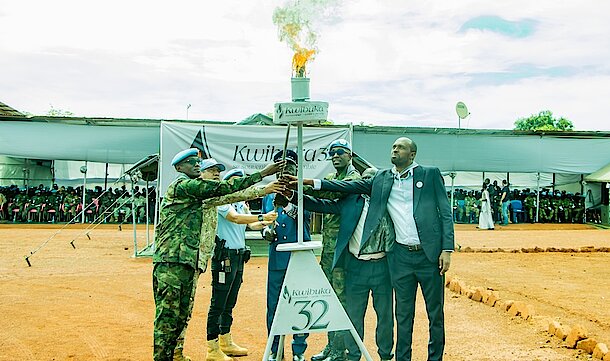 Abasirikare b’u Rwanda bari mu butumwa bw’Umuryango w’Abibumbye bwo kugarura amahoro muri Repubulika ya Santarafurika (MINUSCA), bakorera i Bangui, Bria na Bossembélé, bafatanyije n’abari muri iki gihugu mu buryo bw' imikoranire y’ibihugu byombi, uyu munsi bibutse ku nshuro ya 32 Jenoside yakorewe Abatutsi mu 1994.